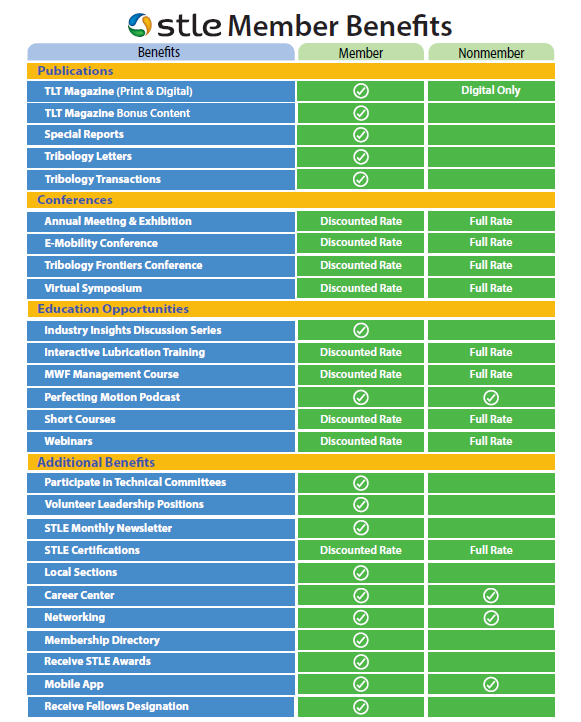 Individual membership provides access to a range of professional resources, including, technical publications, Print copy of TLT magazine, conferences, educational opportunities, and networking with other professionals in the industry. Individual members are typically professionals, researchers, engineers, or involved in the study or application of tribology and lubrication in various industries.