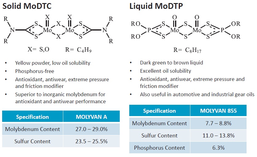 Figure 2. Molybdenum products for engine oils. (Figure courtesy of Vanderbilt Chemicals, LLC.)
