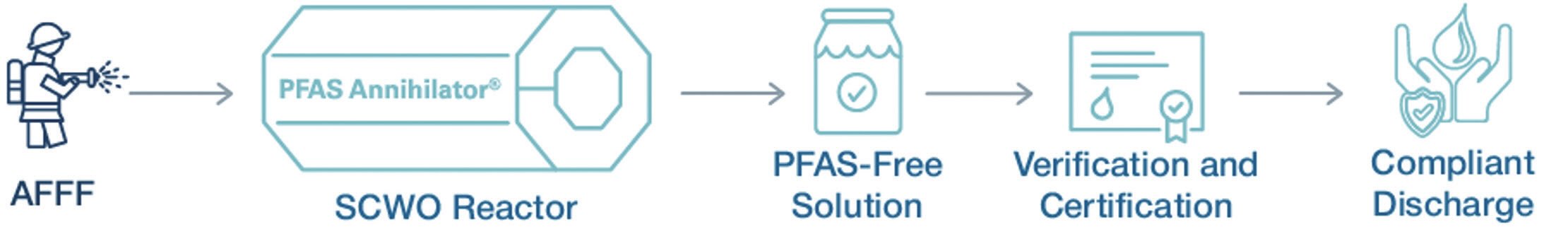Figure 1. The PFAS Annihilator system will convert PFAS-containing aqueous film-forming foam (AAAF) into a compliant discharge through the use of SCWO. Figure courtesy of Batelle Memorial Institute.