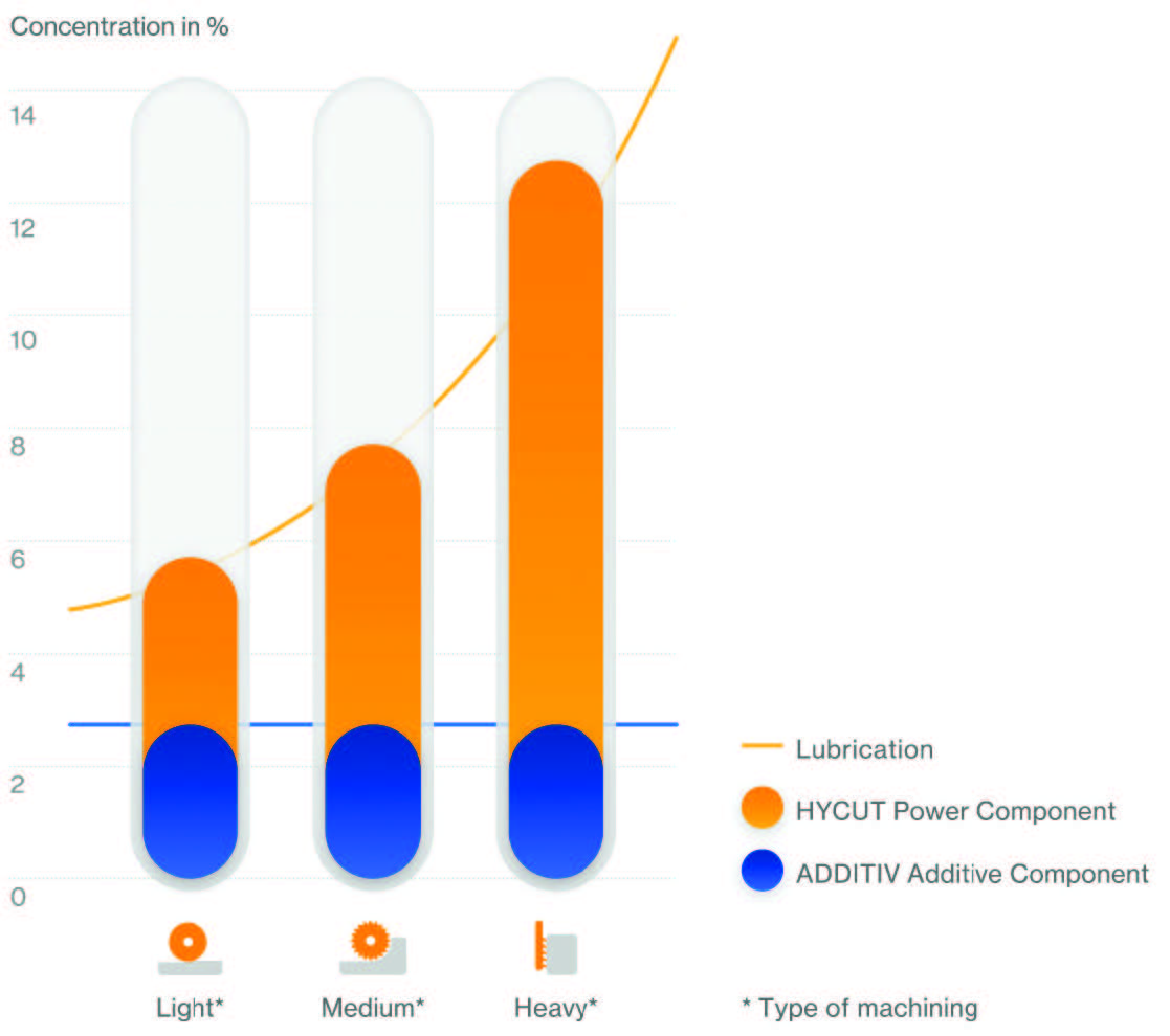 For example, one company introduced a two-component MWF product line to the market in the 1990s, in which an additive package is mixed with a straight or water-dilutable 72% ester base fluid at the ratio best suited to a specific metalworking application. The MWF products are formulated for compatibility with the ester-based machine and hydraulic lubricant products. These products are used by some German auto manufacturers, as well as customers in the aerospace and medical component industries.