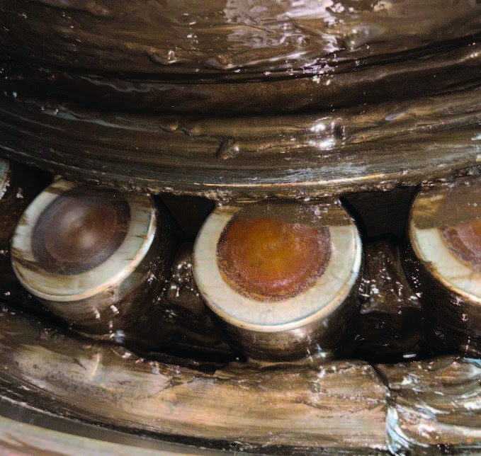 Grosso and Arcelloni agree that the most common damage modes include “surface cracking, spalling, pitting and abrasive wear caused by metal-to-metal contact” (see Figures 1 and 2). They list other causes of premature failure as including “dust and water contamination, improper installation or misalignment and electrical discharges.” They agree: “Inadequate lubrication remains the predominant factor” in bearing failure due to “increased friction and local overheating, thereby promoting fatigue and surface damage.”